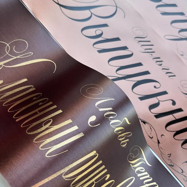 Заказывали ленты для выпускного в школе. Все сделали быстро, качественно и красиво! Дети и родители в восторге!